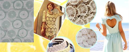 精致的织花蕾丝,搭配清新淡雅或明亮活力的色彩,勾勒出优雅的春夏风情,凸显优雅女人味的同时,不失清新活力,织花蕾丝多用于女性的服装和服饰的运用,以及家装饰品的搭配。
