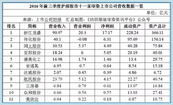 据记者不完全统计,截止10月28日早间,沪深两市11家纺织印染、染料上市公司陆续发布2016年三季度业绩公告。
