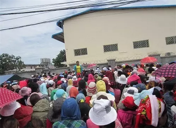 前日下午,柬埔寨原荣益制衣厂关门,工人于开始举行罢工,直到今日已经有大批工人堵在工厂门口,不让工人进入工厂了。