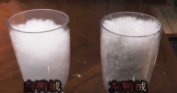 “白鹅稍微保暖性好一点,相对来说价格高一些,因为颗粒比较大,蓬松度比较好”