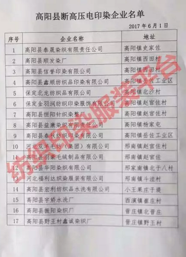 惊恐! 高阳17家印染断电! 全县排水企业停产(附:75家染厂名单)