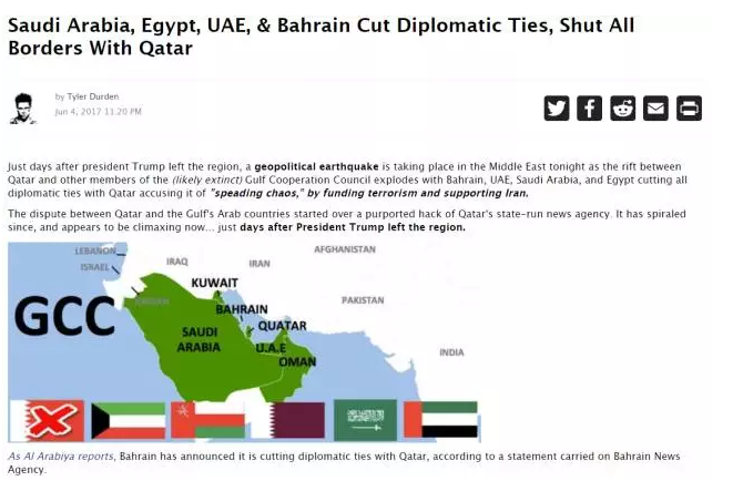 目前已有阿联酋、沙特、巴林、埃及四国宣布与卡塔尔断绝外交关系。