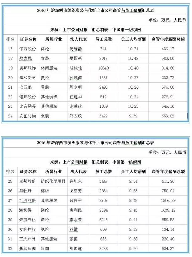 作为纺织服装行业代表的上市公司群体,2016年的从业人员年平均工资怎么样呢?