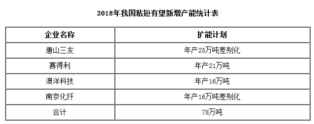 2018年我国粘短计划新增产能中,高端及涉及差别化粘短生产企业,均位居其中。