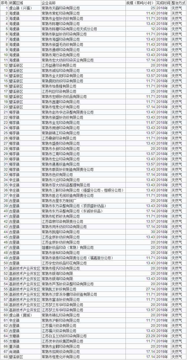 常熟印染厂锅炉大整治:4家淘汰,10家关停,76家整改(附名单)