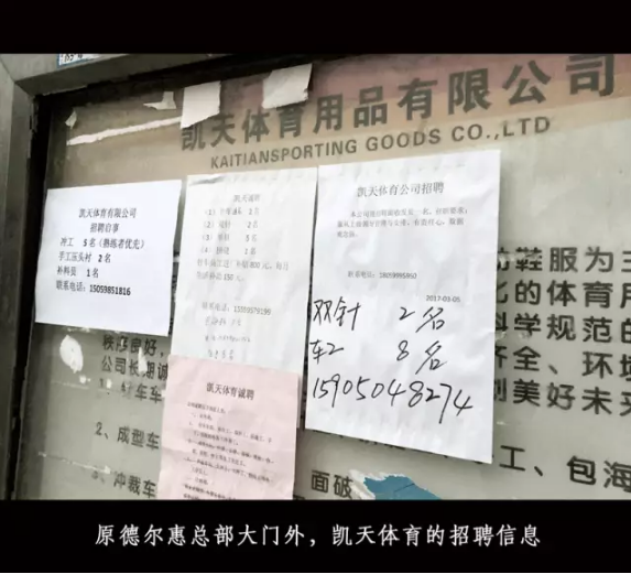 之后,德尔惠被整体交给凯天打理。凯天体育于2016年12月注册成立,目前有约60名员工,法人代表为唐明强。他的另一家公司名为福建省零点体育用品有限公司,同样于去年12月注册,注册地址为晋江池店镇新华宝公司内。