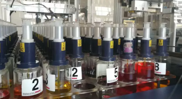 2、如果织物已经染色,而日晒牢度达不到要求的情况下,也可以通过助剂来改善。在染色过程中或染色后添加合适的助剂,使其在受到光照时先于染料发生光反应,消耗光能量,以此起到保护染料分子的作用。一般分紫外线吸收剂和抗紫外线剂,统称耐日晒牢度提升剂。