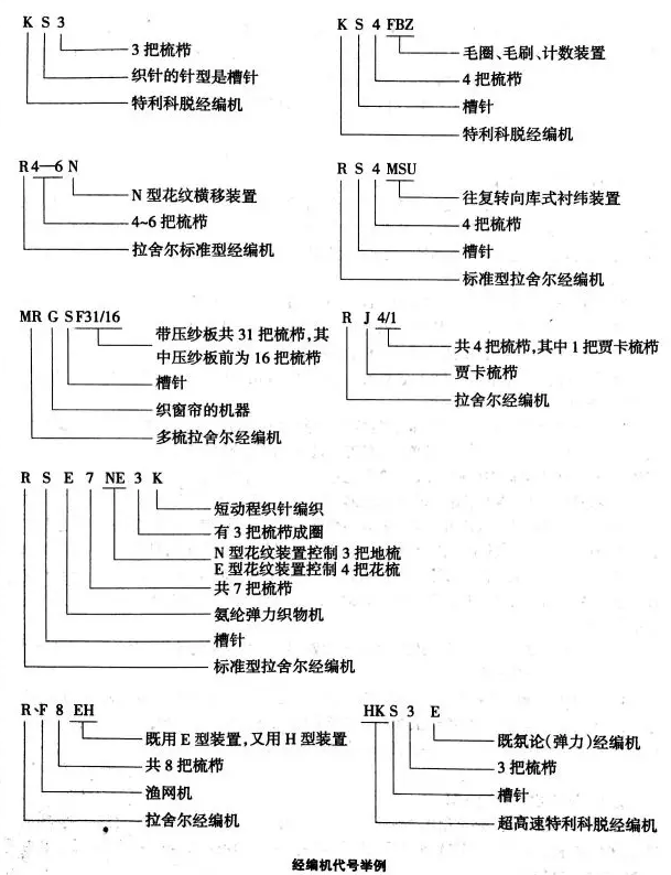 经编机的代号举例如下。