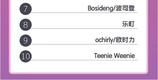 女装类目TOP5分别为优衣库、VERO MODA、ONLY、伊芙丽和韩都衣舍;去年女装类目TOP5分别为优衣库、ONLY、波司登、韩都衣舍和乐町。