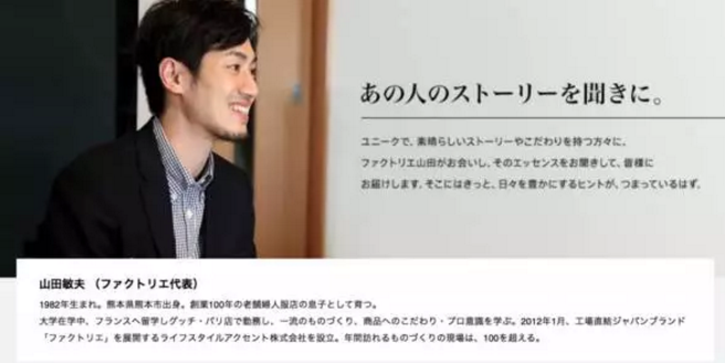 我们先来了解一下Factelier牛牛的主人:山田敏夫(见上图,长这样的,爱美的天秤),年仅35岁,被日本媒体称为“改变日本成衣界的人”。
