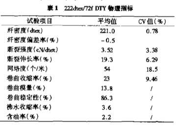 变形加工速度400~550m/min;D/Y2.1;变形温度180~200℃;定型温度150—170℃;定型超喂—5.45%;卷绕超喂一7.45%;网络压力0.15~0.35MPa