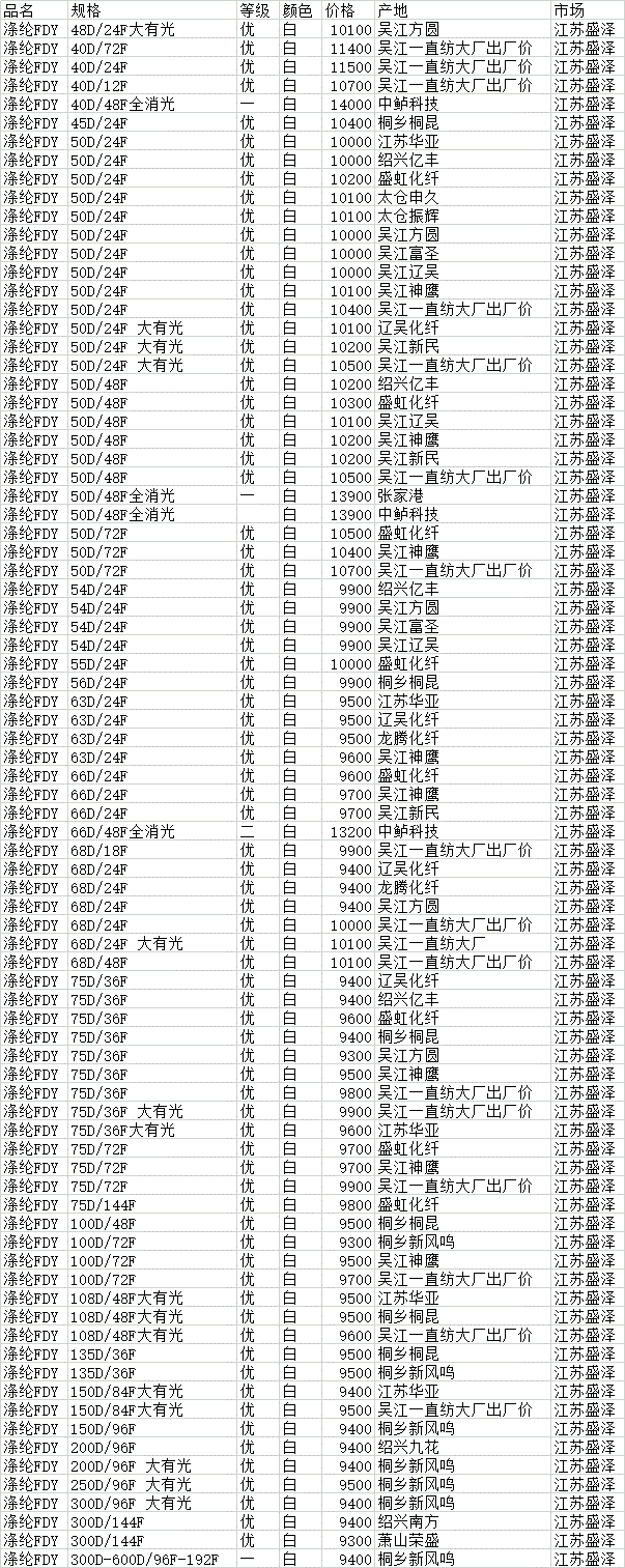 1月11日盛泽市场涤纶FDY价格行情参考