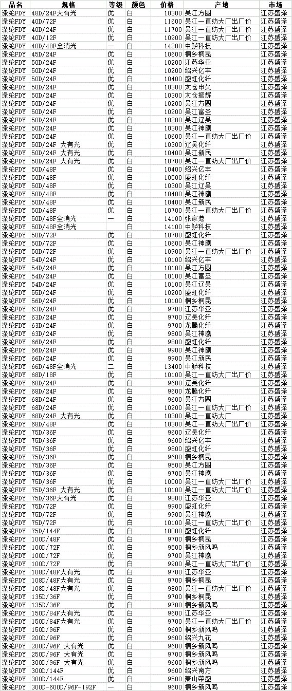 2月1日盛泽市场涤纶POY价格行情参考