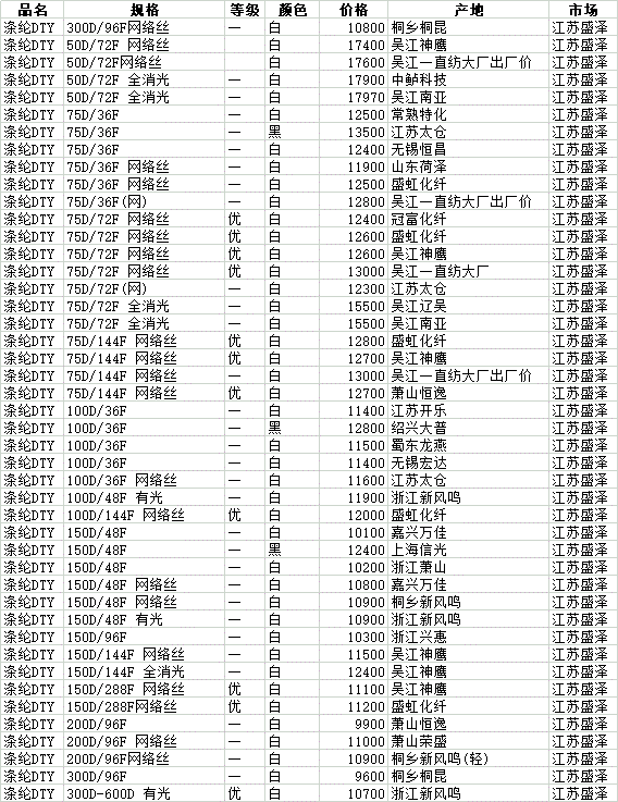 2月1日盛泽市场涤纶DTY价格行情参考