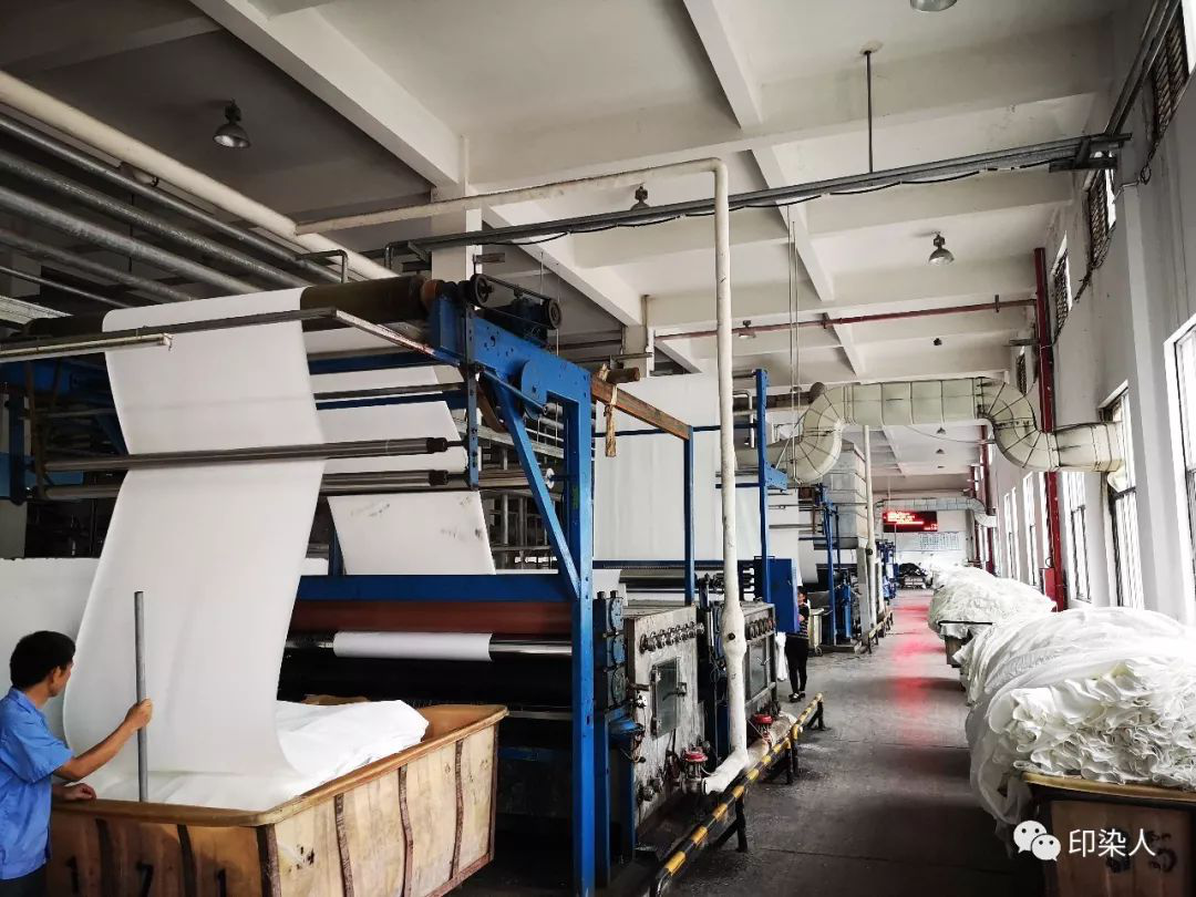 对于不上浆,布面干净,而且是染中深色的织物,可以清水平缩,这样做对稳定染色色光最为有利,因为平缩后的织物上不含有助剂成份,对染色影响小。