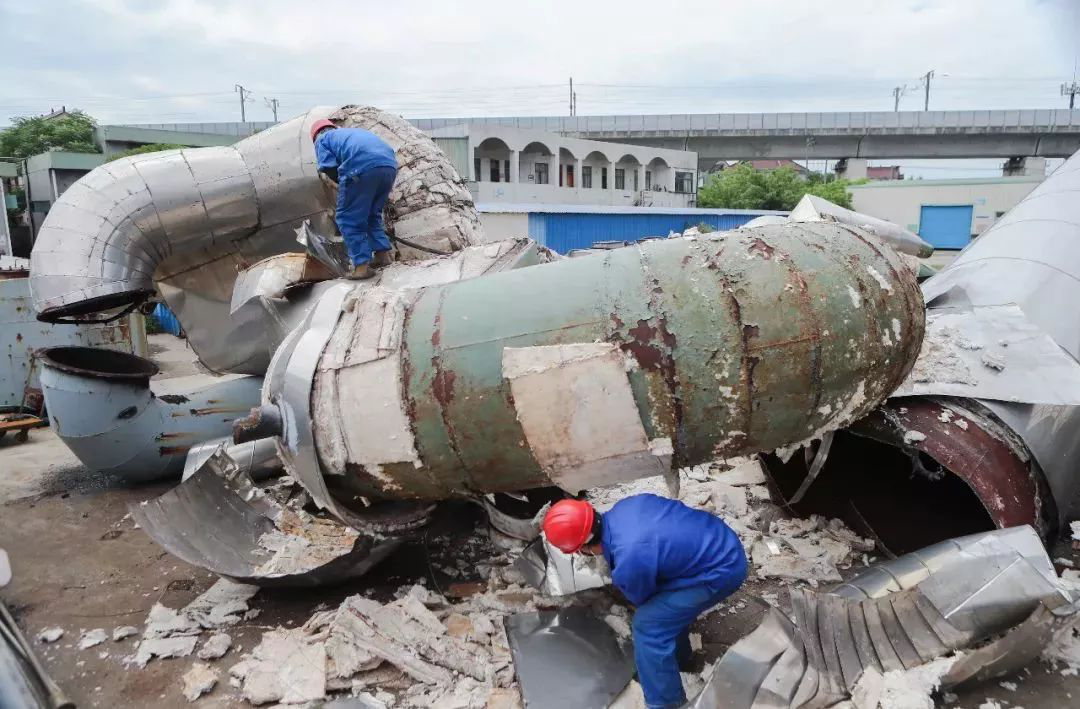 今年春节过后,龙盛、闰土聘请中国化工协会专家作为监理,通过招标确定专业拆迁团队,正式启动了化工设备拆除工作。在确保拆除工作安全、环保的前提下,经过3个月的有序作业,龙盛、闰土分别拆除了全部20座、31座染料喷雾干燥塔,以及反应釜等大型设备。目前,两家企业的设备拆除已进入收尾阶段,正对拆除废料进行分类处理,确保废料不入河,污水不直排。