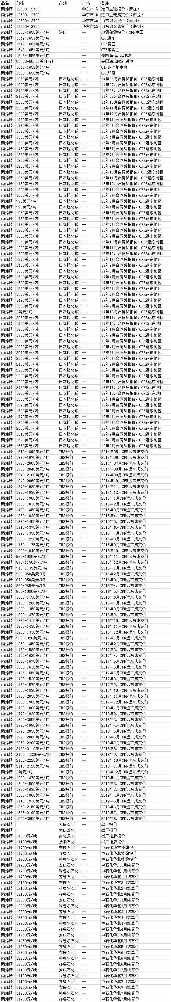 9月11日国内丙烯腈市场价格行情