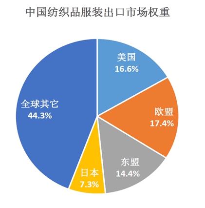 4月份开始,海外疫情爆发进入高峰期。欧盟、美国是中国纺织服装的前两大传统市场出口目的地,占到中国纺织品服装出口34%。由于欧美正处于疫情的重灾区,多国多地先后出台“封锁令”,限制居民非必要的外出活动,导致整体消费出现停滞,犹如中国的2月份。