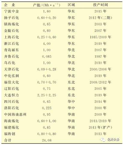 2019年是PX行业发展的重要时间节点,PX产能迎来爆发式增长。国内已建成PX生产装置见表1。