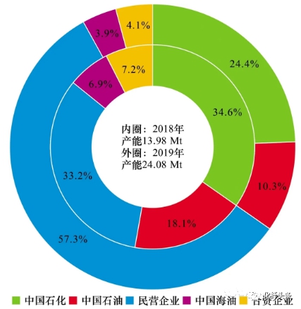 图1 2018年和2019年国内PX竞争结构