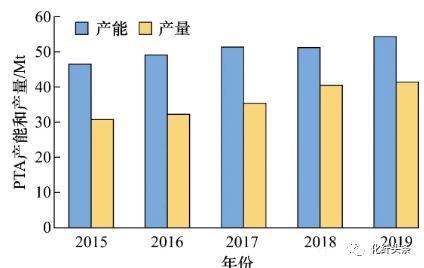 图2 2015—2019年PTA产能和产量对比