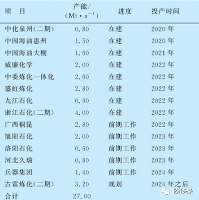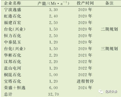 表2 2020—2024年中国PX扩产计划