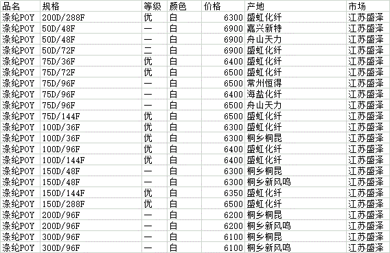 1月11日盛泽市场涤纶POY价格行情参考