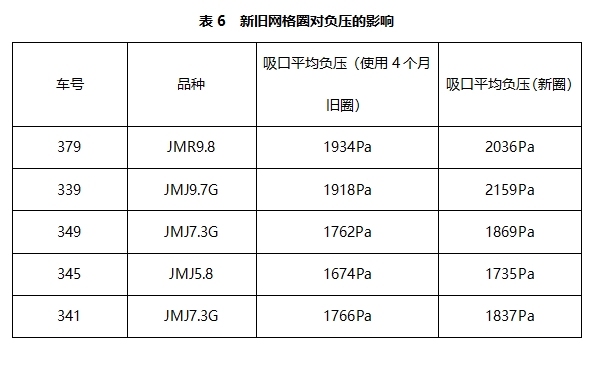 2.4 网格圈新旧程度对负压的影响