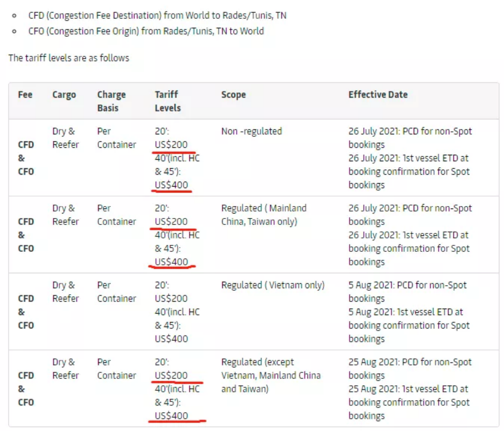 生效日期:2021年09月01日 (目的港卸船日)注意:以上附加费以货物9 月 1 日目的港卸船日开始生效,适用于所有报价和柜型。
