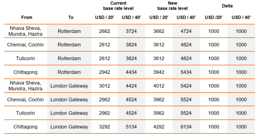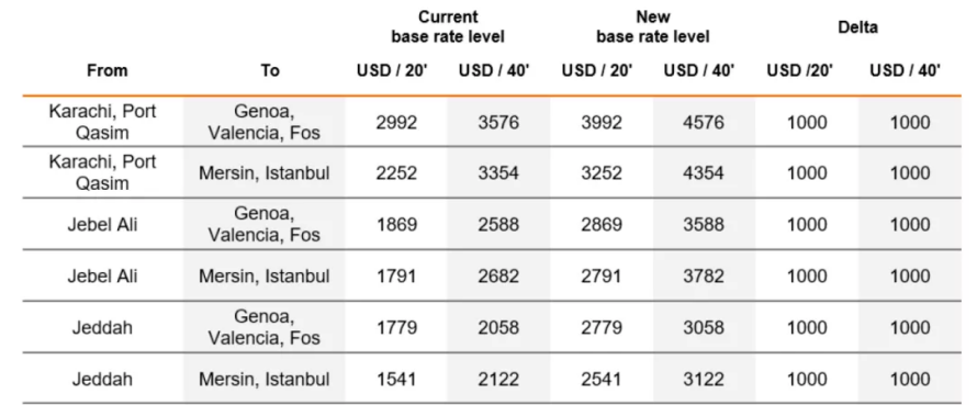 赫伯罗特日前宣布,由于对来自中国的持续超常需求以及由此产生的供应链运营挑战,赫伯罗特将根据常规FAK指南对所有货物运输实施增值附加费(VAD)。
