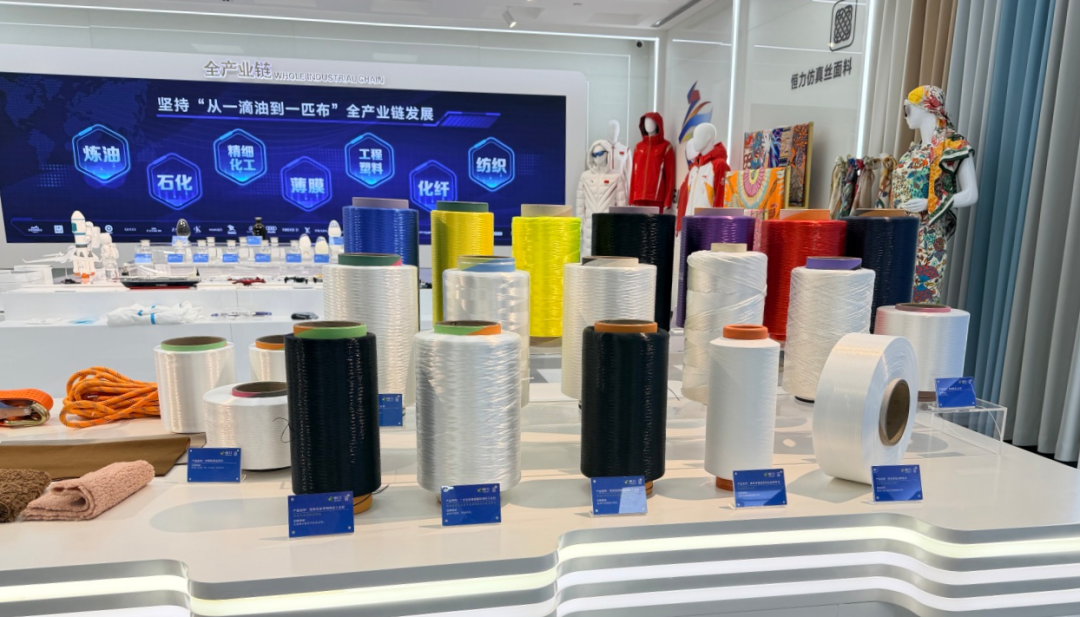 恒力化纤作为“世界500强”恒力集团化纤板块主体企业,综合竞争力长期位居行业首位,在民用与工业纤维双领域稳居行业第一梯队。此次通过鉴定的五项产品呈现“民用重环保、工业强性能”的鲜明特点。其中,“再生双组分弹性丝”“弹性仿棉感涤纶拉伸变形丝”两款民用纤维,聚焦生态环保与可循环理念,既满足消费者对纤维质感的需求,又契合绿色发展趋势;“有色安全带用涤纶工业丝”“一步法制备超粗旦涤纶工业丝”“军需阻燃有色涤纶工业丝”三款工业纤维,则凸显高性能优势,军需阻燃产品可用于伪装、防护场景。一步法超粗旦产品强力高且生产过程绿色清洁,适用于高强缆绳、吊装带等领域,有色安全带产品无需后道染色,色牢度与强度兼具,主要配套高档汽车。