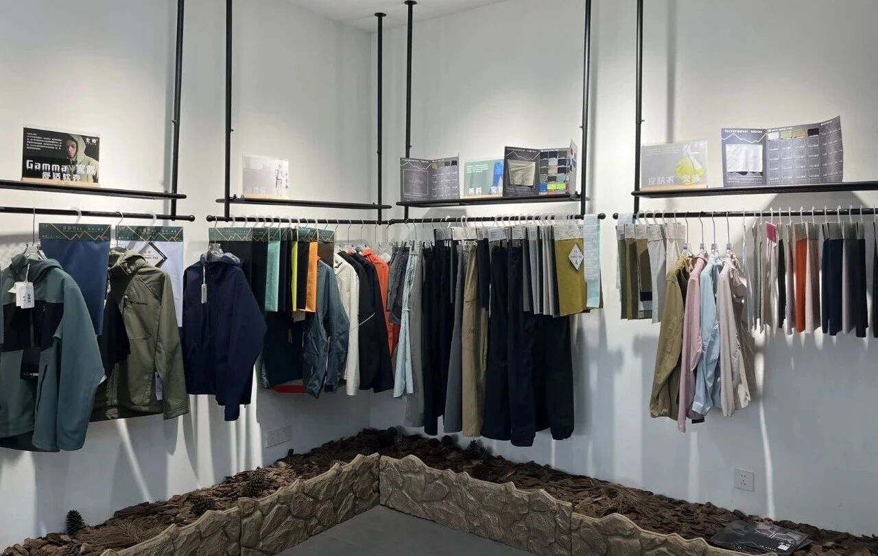 “我们的面料既能防7级暴雨,还具有透湿性。”聊到功能性,周建春语气明显兴奋,他现场比画着,“户外登山最怕闷汗,我们解决了‘防风不透气’的死结,既要挡得住暴雨,又要让汗排出去。”紫荆花的功能性面料对标美国戈尔公司,主打“轻薄、耐磨、弹力”三大特性,已进入始祖鸟、凯乐石等高端户外品牌供应链。在众多核心新品中,“军转民尼龙66面料”备受关注。“这种材料最早用在降落伞上,耐磨牢度特别好。”周建春解释,把军工技术转民用,就是为了解决户外服装“不抗造”的痛点,“现在年轻人的户外服不只是登山穿,日常也穿,因此既要有专业功能,又要耐穿,这款面料正好契合需求。”