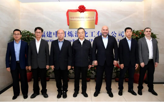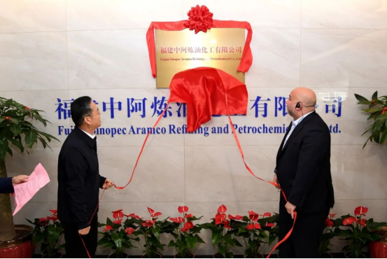 福建炼化公司董事长、福建中阿炼化公司董事长兼总裁张西国,阿美亚洲公司总裁赛乐・扎伊德共同为公司挂牌,福建炼化、中国石化及沙特阿美三方代表出席仪式,见证中沙能源合作的重要里程碑。