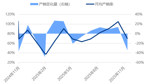 2024-2025年国内涤纶长丝月均产销率及变化趋势