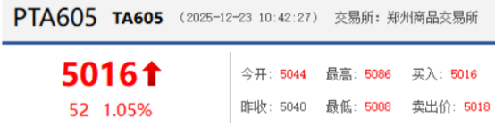从近期数据来看,自12月17日以来,地缘政治局势危机推动国际油价持续上探,带动聚酯原料市场氛围,截至12月22日,聚合成本较12月17日涨幅超4%,逼近5400元/吨关卡;然上游PTA表现更为强劲,12月17日开盘价4650点,至22日盘中已逼近5000点大关,短时间内上涨超300点,23日更是突破5000点大关。